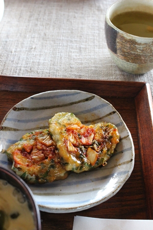 お豆腐チヂミ、ある日はハート型を作ってくださり私のお皿に♡