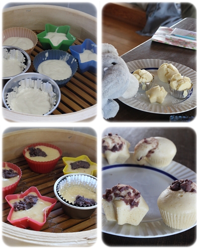 続いて弟君妹ちゃんは蒸しパンを作りました。