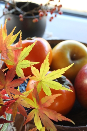 我が家には窓の近くにもみじの木が2本あるのですが、陽が西に傾く午後、斜めから入る秋の太陽の光が窓に差し込むと、家の中がもみじの色に染まる瞬間があります。