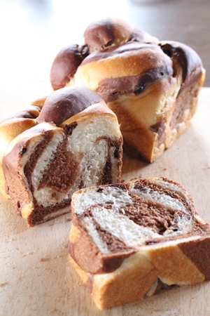 パン・旬チョコマーブル チョコのパン プレーンの生地とココア生地を重ねて重ねて編んでみたら どんな模様になるかなあ? チョコチップも所々に入っていて、チョコ感満載です♪ そして、バナナを載せて~シナモン振りかけて~トースターで焼いて~そこにアイスクリーム~ コーヒー多めのカフェオレといただきました。 チョコ好きの方気に入っていただけるといいな♪ 投稿者: 後藤 和美 後藤 和美 のすべての投稿を表示