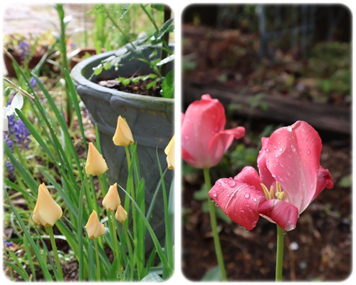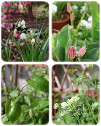 自然雨上がりのお庭 しっかり雨の降った翌朝の様子です。 ひんやりとした空気の中 聞こえるのは小鳥のさえずり 今日もいい日になりますように~♪ 私は、 明日の ”おひさまこどもキッチンinルティロワ” 明後日の ”あづみのキッチン” の準備 来週の ”月のはじめはパンとお菓子と” の試作 等々頑張りま~す。