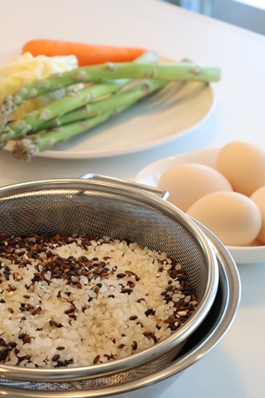 今日は、黒米を入れて酢飯を作りちらし寿司にしました。