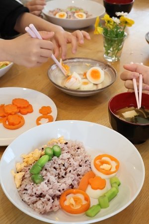 卵は何にしたいか決めさせました。午前の子は皆、ゆでたまご~