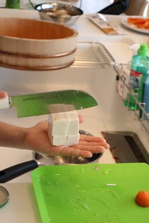 お豆腐を手の上で切ってみたり、アスパラも根元のほうをピーラーで皮をむこうと言っていたら包丁でやってみる!って子もいたり